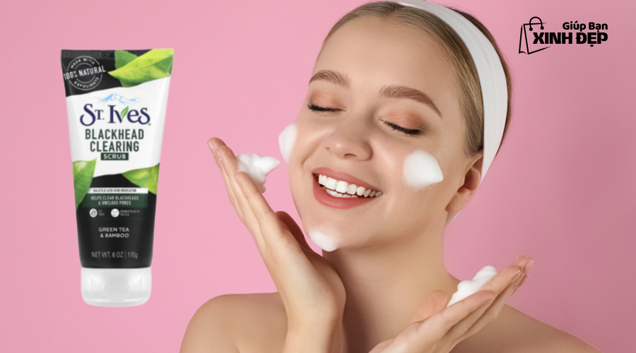 - Sữa Rửa Mặt St. Ives Trà Xanh Blackhead Clearing Green Tea Scrub cũng chứa Salicylic Acid, hỗ trợ điều trị mụn và kiểm soát lượng bã nhờn trên da, đồng thời rất nhẹ dịu và làm mềm da.
