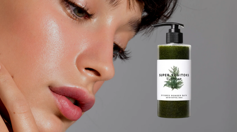 Thành phần chính của sữa rửa mặt Super Vegitoks Cleanser bao gồm: cần tây, cải bắp, quả cola, trà xanh, hồ tiêu, cà rốt, khoai tây, cà chua, rau diếp và chanh.