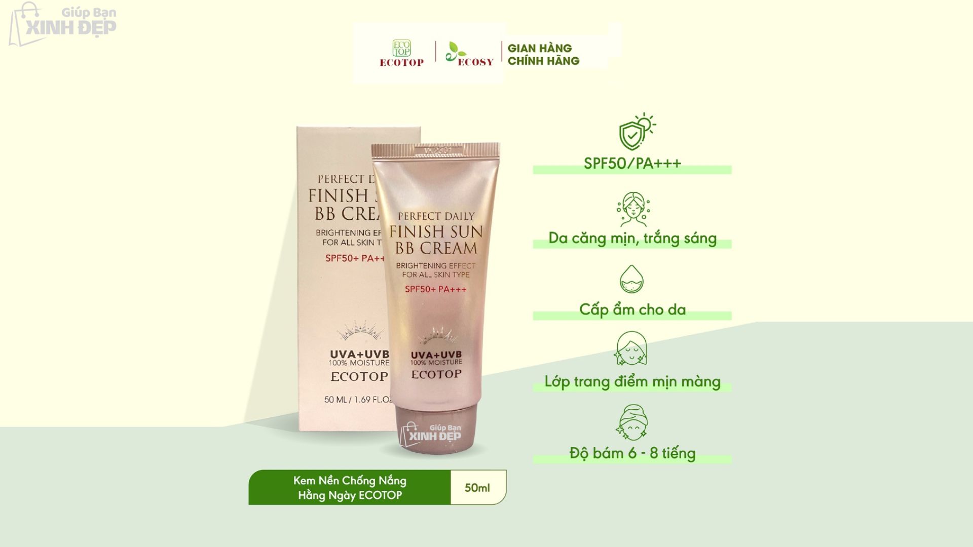 BB Cream chống nắng Perfect Daily Ecotop chính hãng Hàn Quốc là giải pháp hoàn hảo cho mọi loại da, giúp bảo vệ làn da tối ưu trước tác hại của ánh nắng và môi trường. Nếu bạn đang tìm kiếm một sản phẩm chống nắng khác chất lượng, đừng bỏ qua kem chống nắng Top Face UV Perfect – một lựa chọn tuyệt vời mà bạn có thể khám phá.
