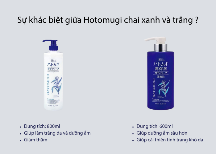 Sữa tắm Hotomugi chai xanh với trắng khác nhau thế nào?