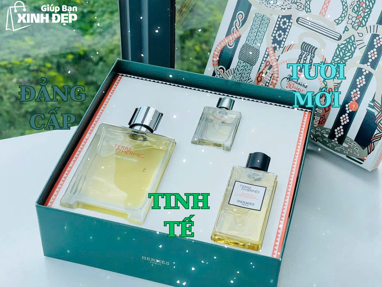 Set nước hoa nam Hermes Terre d'Hermès Eau Givrée 3 món mang đến nét tinh tế, đẳng cấp nhưng không kém phần tươi mới. Set bao gồm nước hoa 100ml, nước hoa mini 12,5ml tiện dụng và chai tắm gội 40ml cùng hương nước hoa, giúp bạn trải nghiệm trọn vẹn sức sống từ Hermes Terre d'Hermès Eau Givrée.