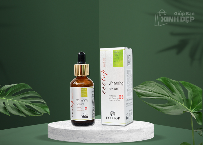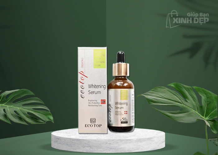 Serum Dưỡng Trắng Da Whitening ECOTOP với tinh chất dưỡng trắng da có các thành phần dưỡng chất chiết xuất từ cúc mâm xôi và tre cùng với các tinh chất làm trắng giúp thấm sâu, khắc phục nhược điểm da quá nhiều dầu, xỉn màu, lỗ chân lông to và còn có khả năng ngừa mụn, giúp da trắng khỏe mạnh và mịn màng.