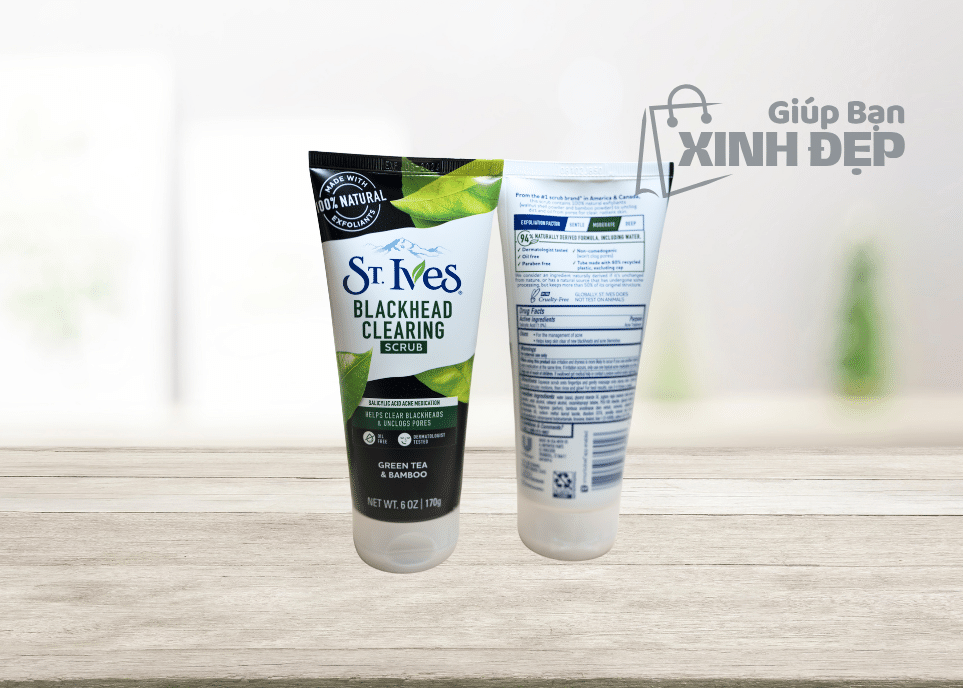 - Thành phần 100% từ thiên nhiên, Sữa Rửa Mặt St.Ives Blackhead Clearing Green Tea Scrub là một lựa chọn hoàn hảo cho bất cứ ai đang kiếm tìm cho mình một loại tẩy da chết với chất lượng tuyệt hảo mà giá cả lại bình dân.