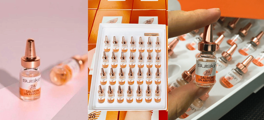 - Với bộ tinh chất Salmon DN Ampoule Suiskin các bạn hoàn toàn có thể trị liệu làn da ngay tại nhà.